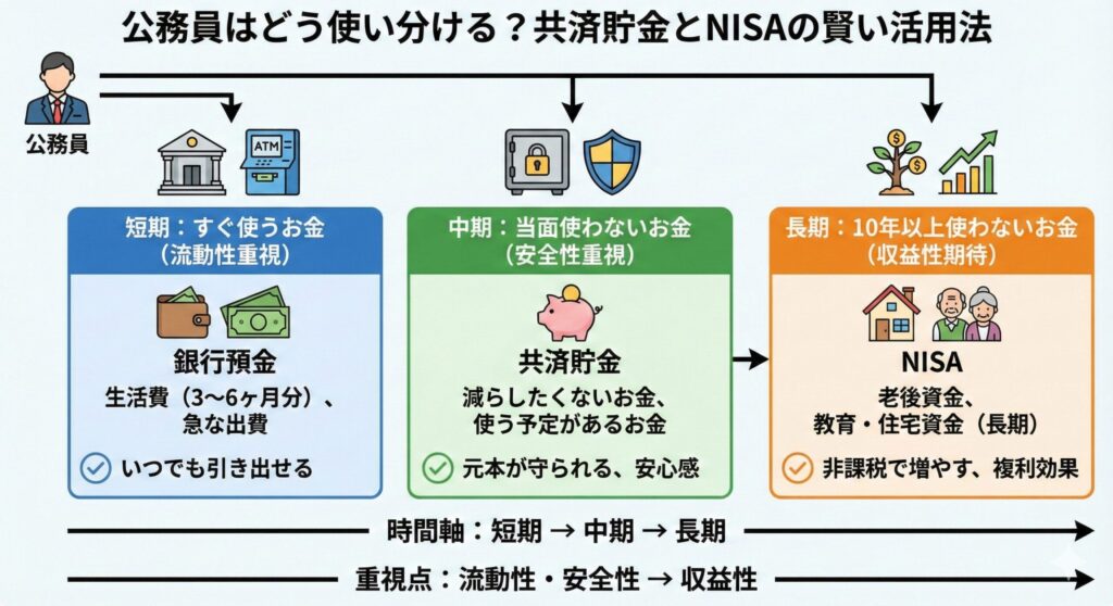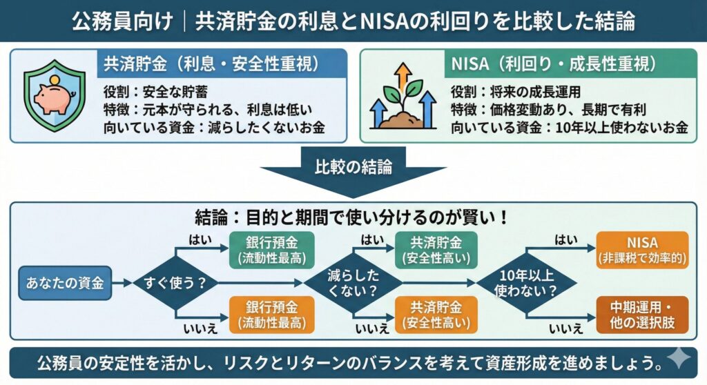 公務員という安定した立場を活かし、目的ごとに使い分けることが、後悔しない資産形成への近道です。