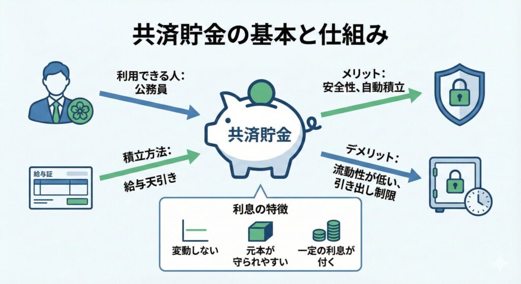共済貯金は、公務員が加入する各共済組合ごとに用意されている貯蓄制度です。