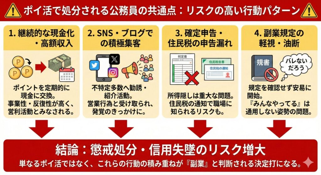 ポイ活で処分される公務員には、いくつかの共通した特徴があります