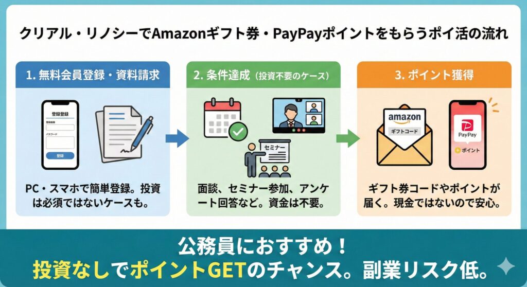 不動産投資サービスを活用したポイ活は、公務員でも比較的取り組みやすい方法の一つです。