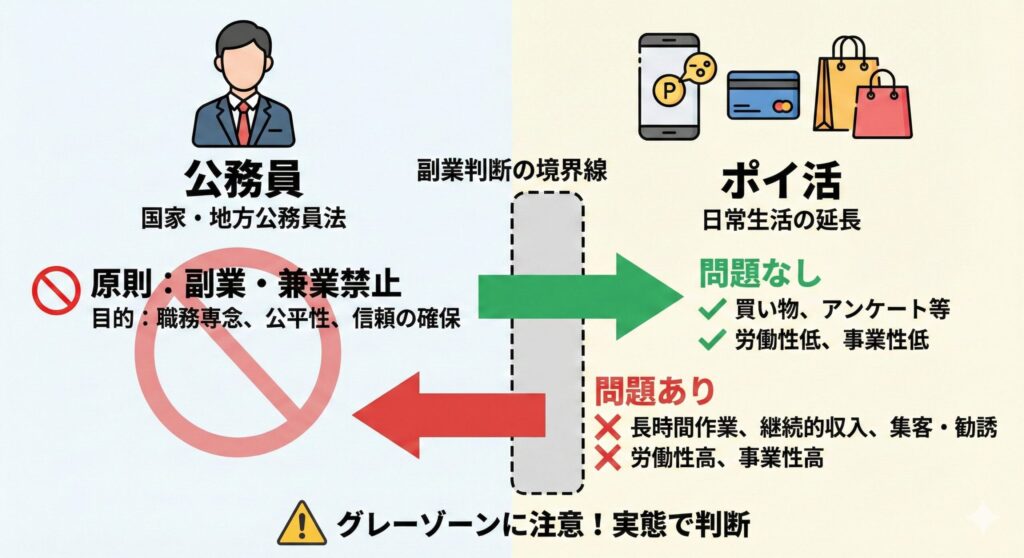 公務員のポイ活は一見すると問題なさそうに見えますが、法律上の位置づけや実態によって判断が分かれます。