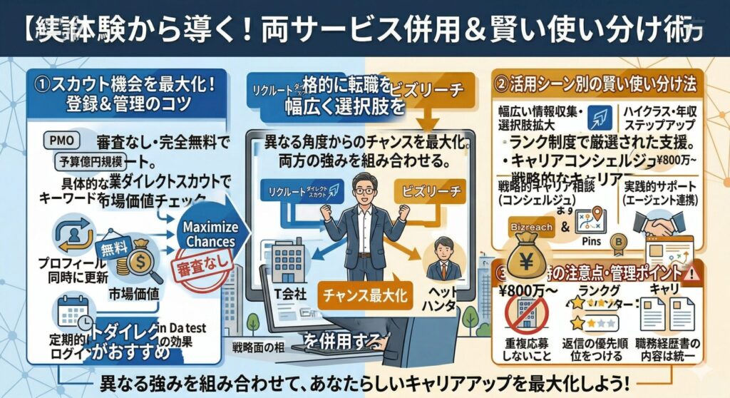 リクルートダイレクトスカウトとビズリーチは併用すべき?賢い使い分け術